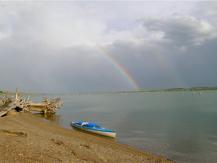 The Dakota’s can be a mental test. You have Lake Sakakawea and Oahe and, boy let me tell you, they can drain you mentally. Expect WIND and …more WIND….then a couple minutes of calm and then more WIND! It also blows in all directions…not just from west to east. The winds can change direction every hour. What I noticed in 2004 was the wind would really start to kick up about 8 am….die down a bit between 11 am and 2pm, then pick up hard from 2pm until the sun set. Once the sun set it is rather calm until morning…sometimes it is like glass on the water. A good time to make up lost miles is paddle in the dark under a full moon when the water is placid. During the day time hours you just have to keep moving whenever there is a break. Sometimes you may have to sit on shore 1/2 hour, 4-hours or all day….just be ready when it abates to jump in your boat and start paddling. I was wind bound 4-days on Oahe without moving an inch. The winds were 40-60 mph and the seas well over 10 feet high.