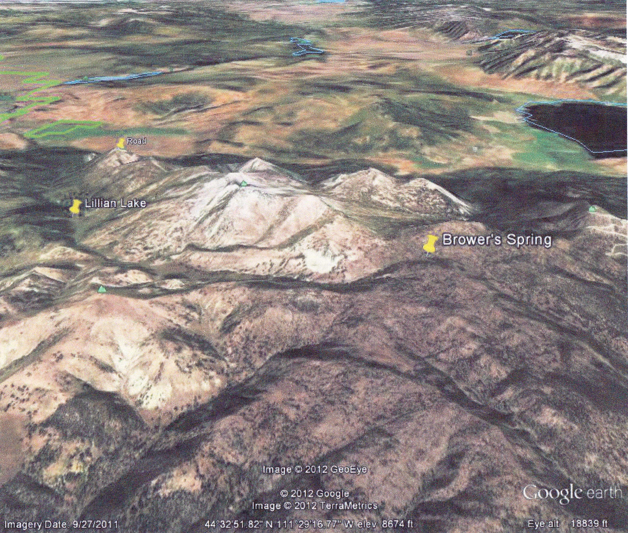 Google Earth 3-D map of Brower’s Spring area. (photo by Janet)