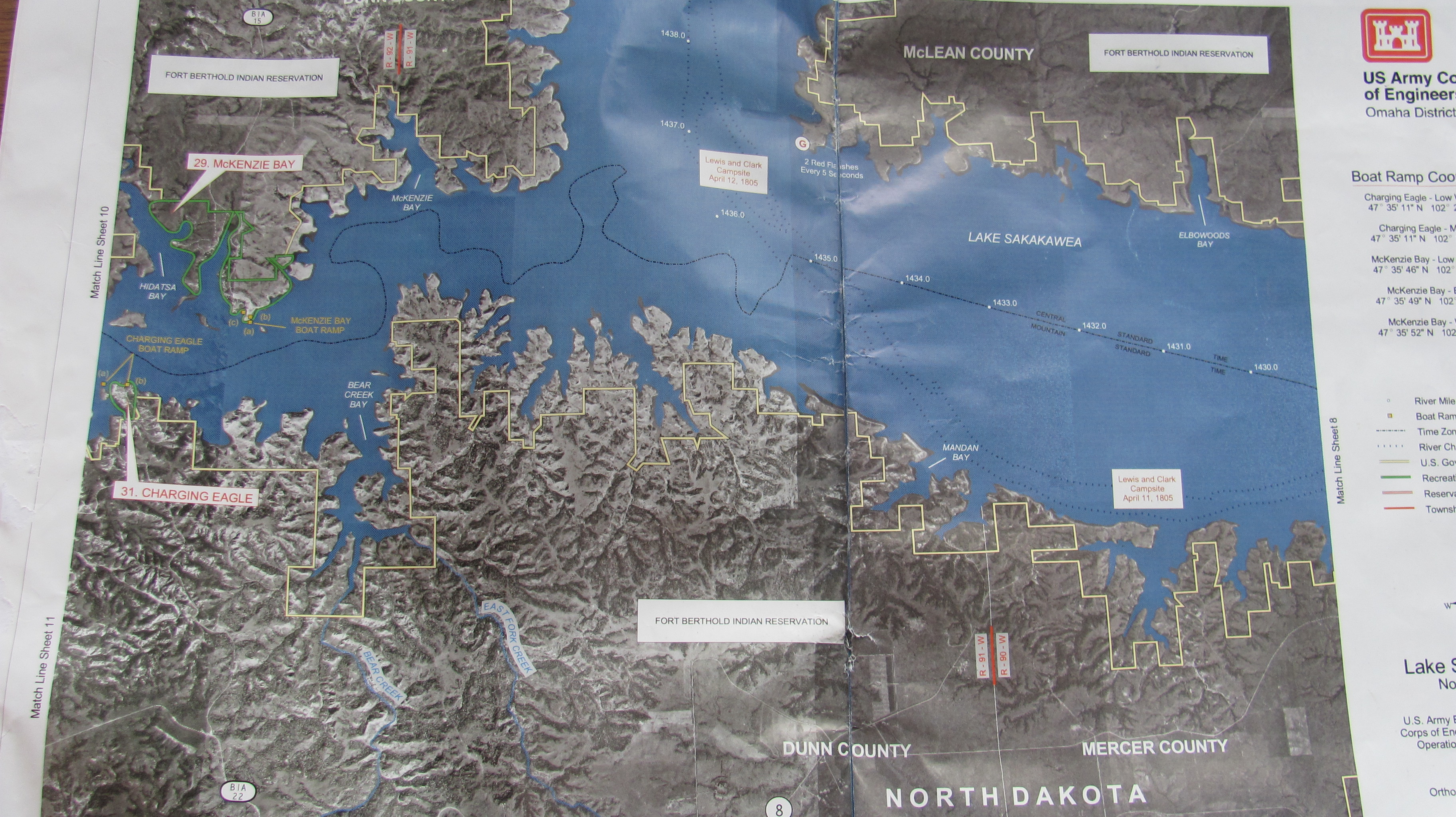 Army Corps of Engineers Map – Lake Sakakawea, North Dakota