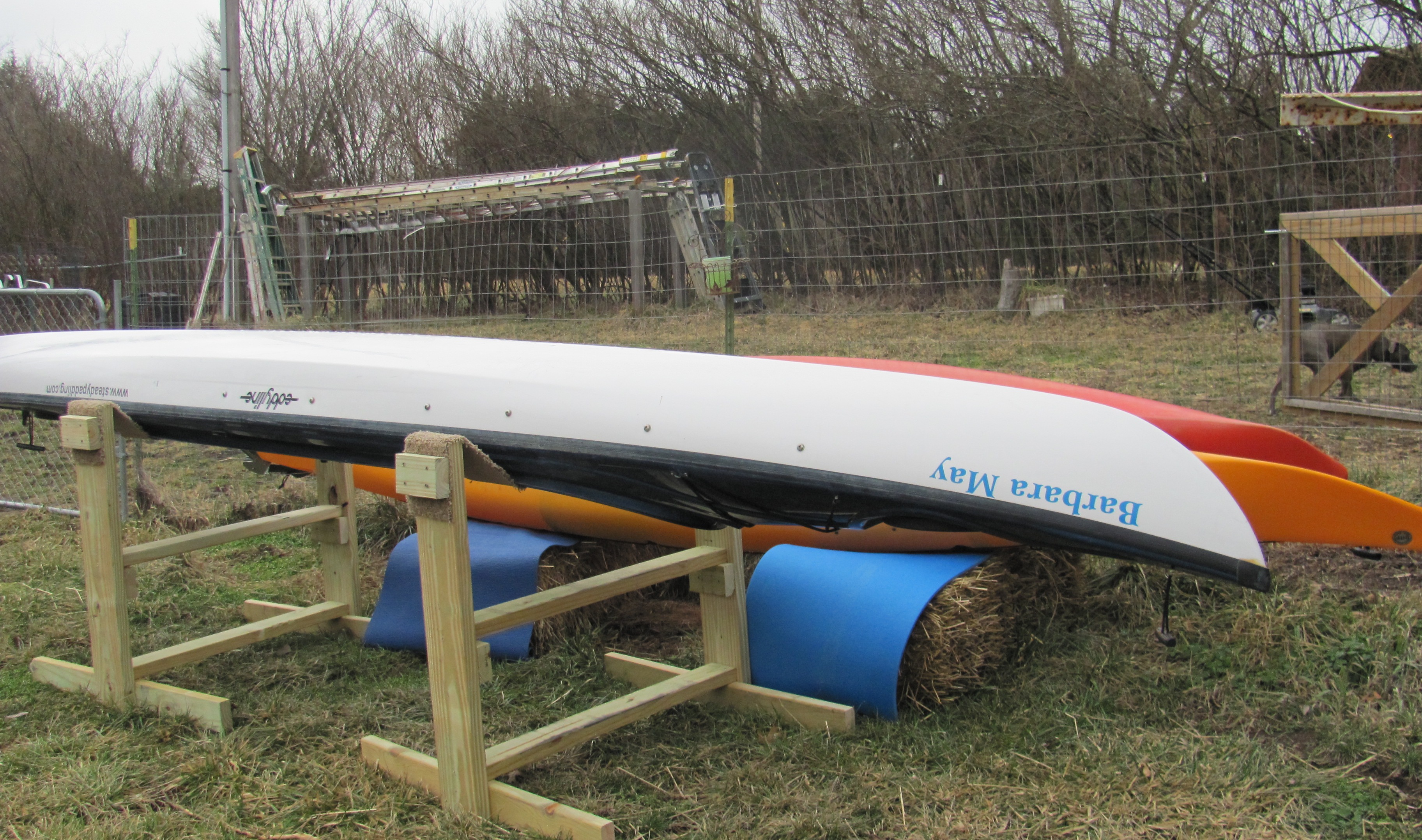 I will also get the rudder hooked up with the cables, remove the old name, “Barbara May” and change to “Blue Moon.” I mean, how often does a trip like this cross your path? You got it: once in a blue moon. The next blue moon is in 2015, I believe. Anyway, I will also remove Bob Bellingham’s web site address, steadypaddling.com, and apply my own, http://www.loveyourbigmuddy.com. I think I will be ready for my maiden cruise after that.