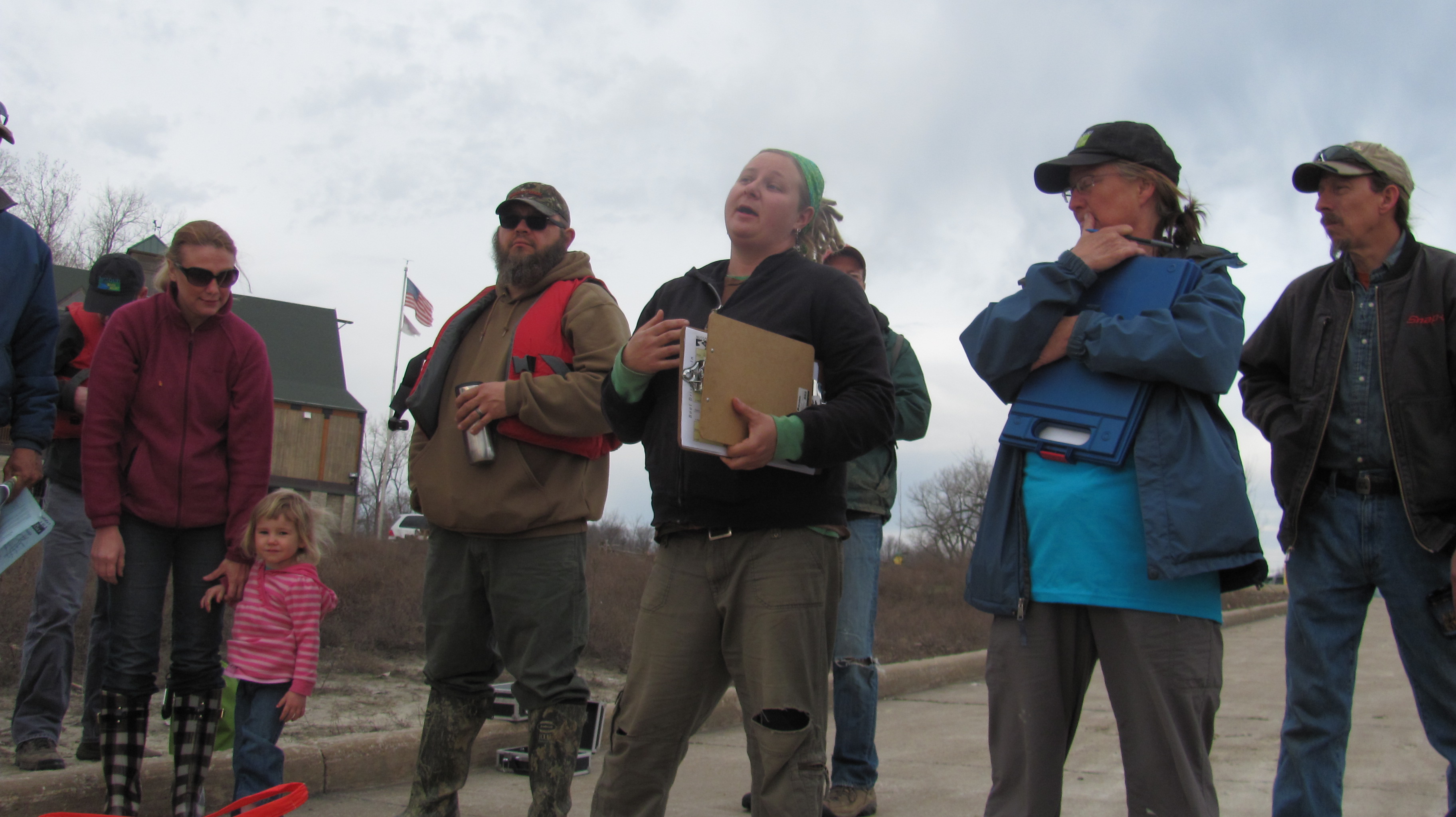 Racing Dave offering up expert advice. Army Corps of Engineers (left) and Conservation Department (sitting) were also driving boats.